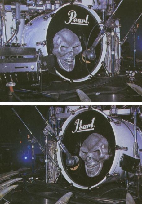 鼓上的骷顱頭是用阿宏的戒指當模型的,鼓上的字一邊是" Pearl"一邊是" HEART",