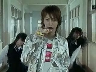 hyde在 MC的時候他就躺在鼓座的後面休息,曲子要開始了才起來,