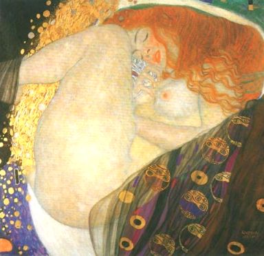 Klimt在畫中為 Danae的雙腿之間加上了黃金雨,